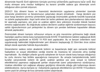 Boğaziçi Üniversitesi’nden “Yüz Yüze Eğitim” Kararı