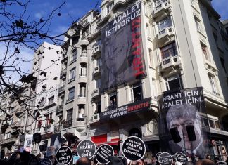 Ermeni gazeteci Hrant Dink'in katledilişinin 12. yılında Agos Gazetesi önünde anma gerçekleştirildi.