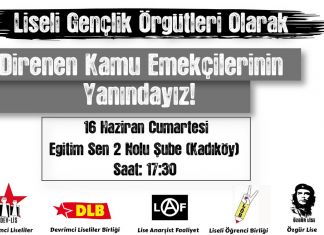 Liseli gençlik örgütleri, direnen kamu emekçilerinin basın toplantısına katılım çağrısı yaptı. Aralarında Dev-Lis, Devrimci Liseliler Birliği (DLB), Lise Anarşist Faaliyet (LAF), Liseli Öğrenci Birliği...