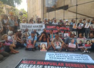 Hapishanelerdeki hasta tutsakların serbest bırakılması için her cumartesi Galatasaray Meydanı'nda gerçekleştirilen "F Oturması" eyleminin bu hafta 325. si yapıldı. İnsan Hakları Derneği (İHD) İstanbul...