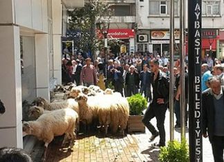 Ordu Aybastı Belediyesi tarafından hayvan barınağı yıkılan çiftçi Bayram Kurt, koyunlarla belediyeyi basarak eylem gerçekleştirdi.