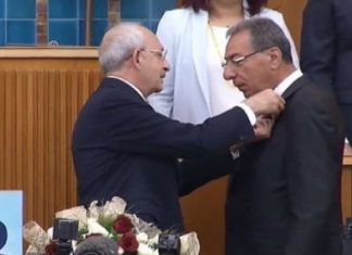 CHP Genel Başkanı Kemal Kılıçdaroğlu, partisinin TBMM’deki grup toplantısı öncesinde MHP’den istifa ederek CHP’ye katılan 4 kişiye rozet taktı. Rozetlerin takılmasının ardından salonda “Faşizme...